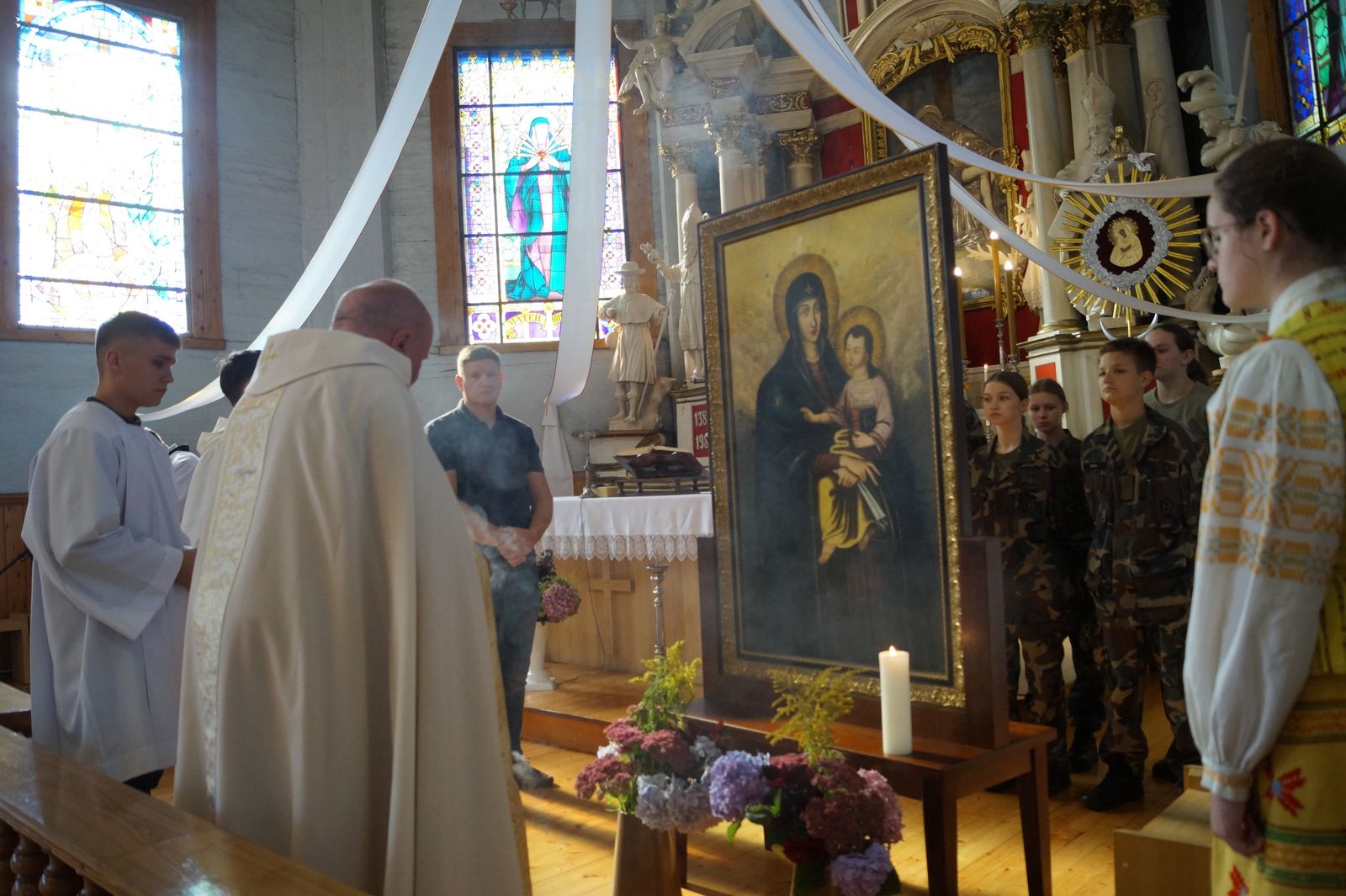 Šiluvos atlaidų procesijoje su Švenčiausiuoju Sakramentu nuo altoriaus aikštėje į Apsireiškimo koplyčią šiemet savanorių buvo nešama visus atlaidus lydėjusi Dievo Motinos su Kūdikiu paveikslo kopija. Vyskupas Saulius Bužauskas paskelbė apie Šiluvoje prasidedančią piligrimystę – pirmoji paveikslą sutiko Raseinių Švč. Mergelės…