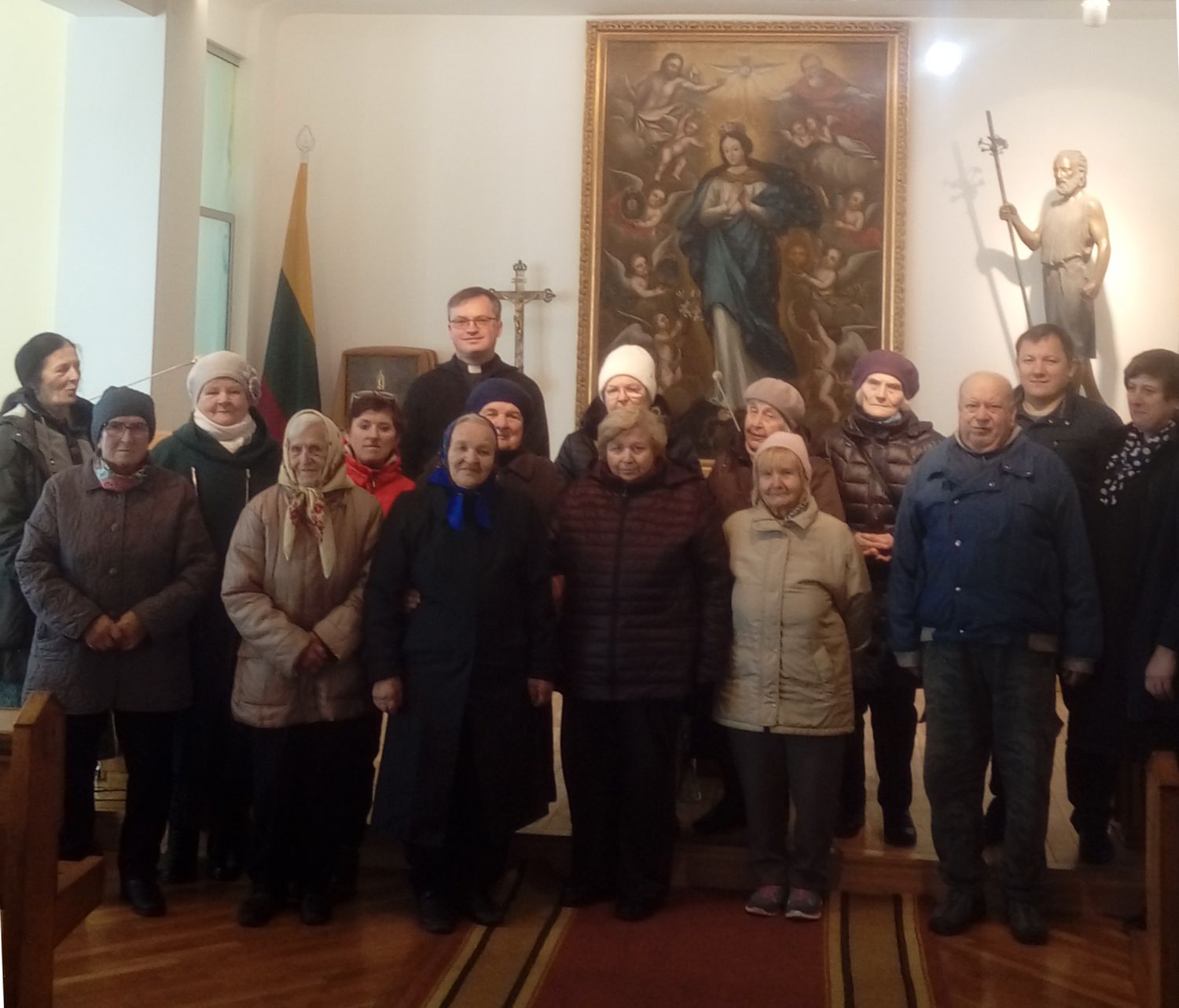 Po šv. Mišių meldėmės Rožinį ir į šv. Juozapą. Maldą vedė kunigas Nerijus. Rožinio pabaigoje pasimeldėme už šios parapijos mirusius kunigus, parapijiečius, Gyvojo Rožinio maldininkus bei už taiką ir ramybę pasaulyje.