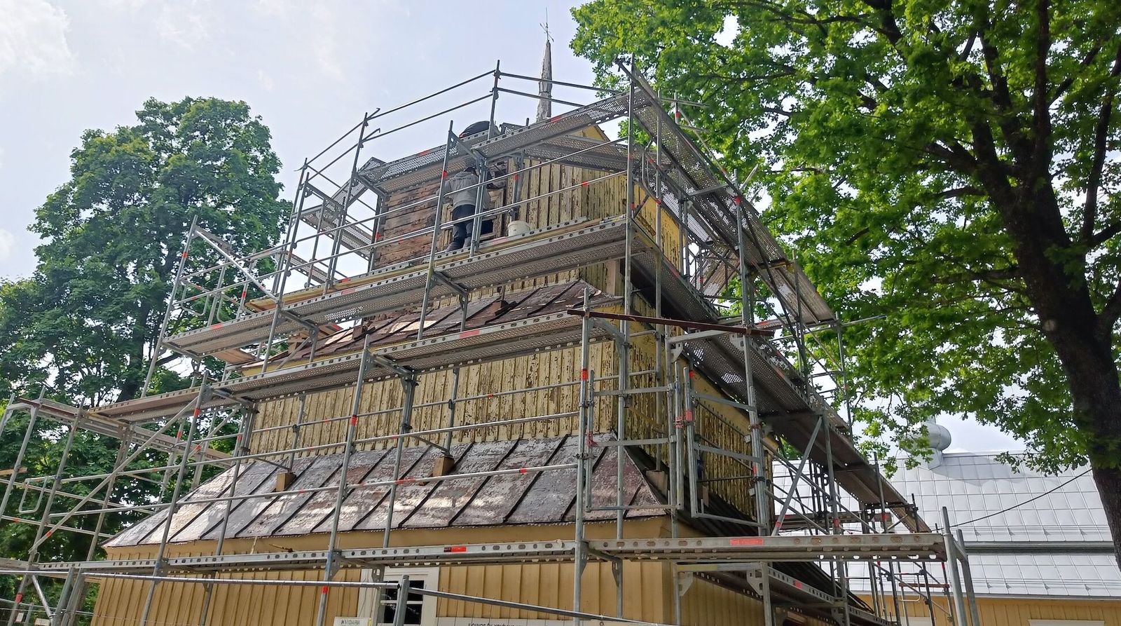 Dabar baigiama tvarkyti šalia bažnyčios esanti varpinė.