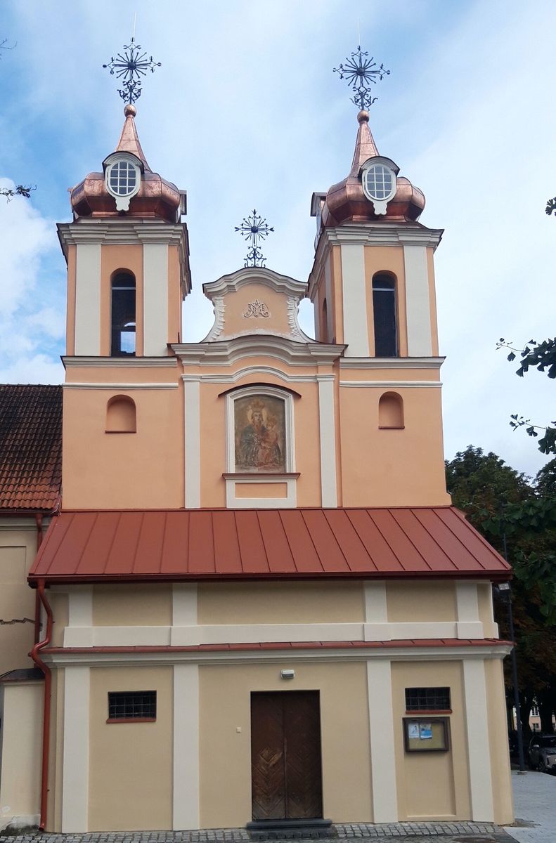 XVIII amžiaus pradžioje bažnyčios siluetas formuotas bokštais: apie 1725 metus vietoje vieno iškilo du bokštai su šalmais ir paauksuotais kryžiais. Po didžiųjų Vilniaus gaisrų (1737 ir 1748 metais) atlikti esminiai pertvarkymai: tarp bokštų vietoje kupolo atsirado frontonas, sumūryti skliautai, o šalmų formos perdirbtos vėlyvojo baroko dvasia.