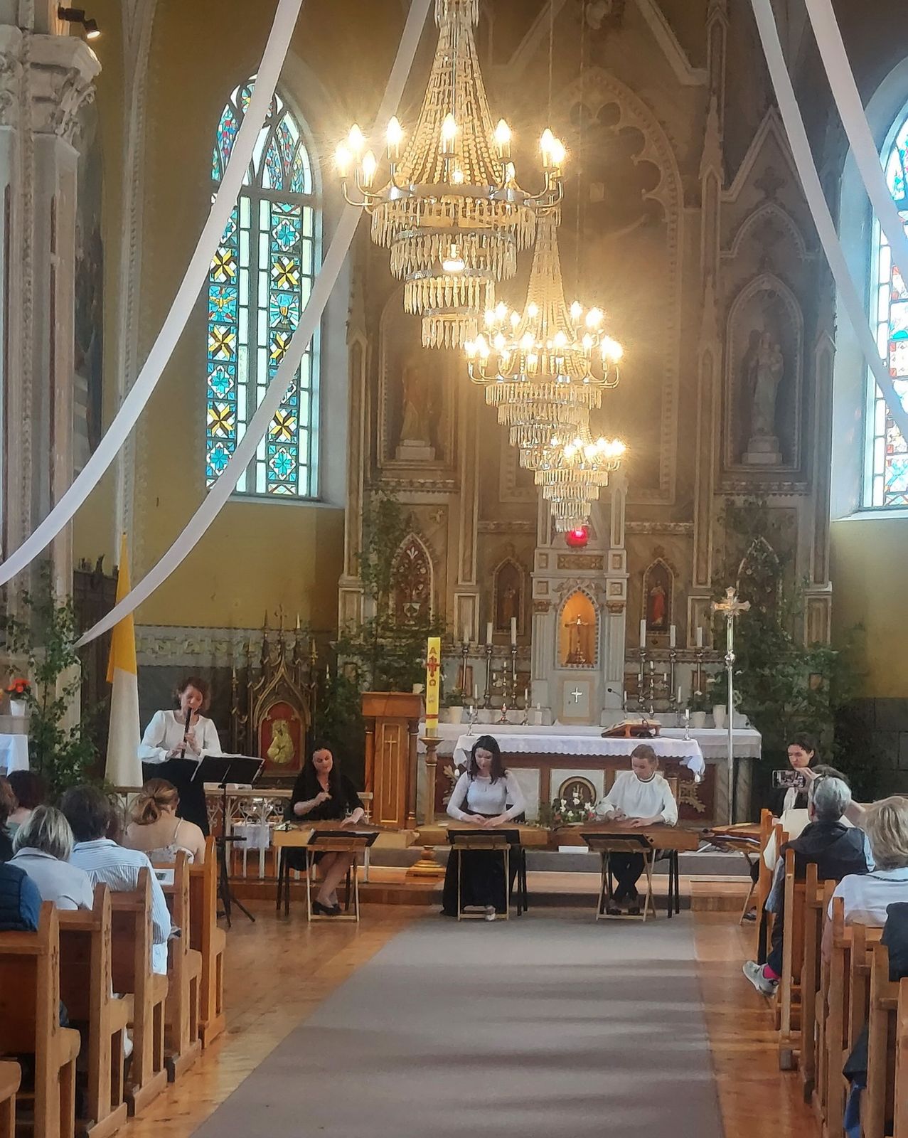 Dėkojame iškiliai mūsų kraštietei, profesorei Linai Naikelienei ir talentingoms jos mokinėms, valstybinio ansamblio „Lietuva“ narėms, už puikią muzikinę Sekminių dovaną. (…)