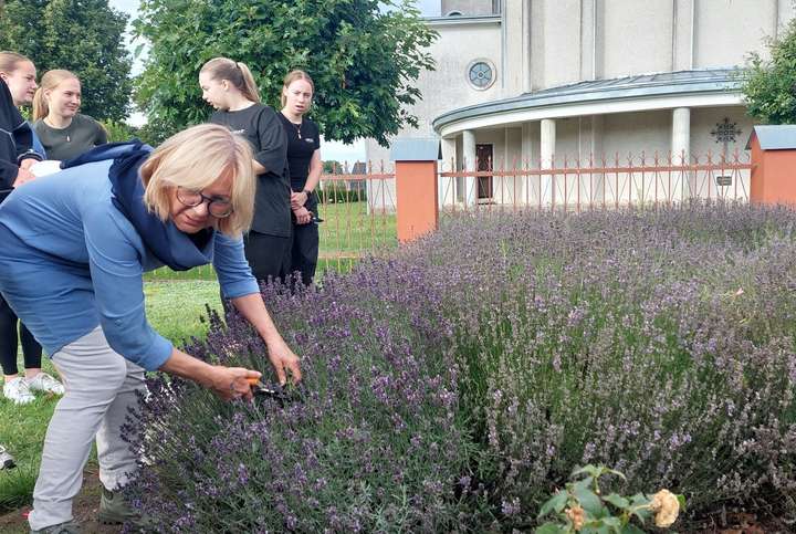 PILVIŠKIAI. Kaip neužmirštamai iki šiol išgyvename koronaviruso pandemijos meto pojūčius, taip su jais atplaukia ir šviesūs potyriai… Pilviškių Švč. Trejybės parapijos katechetė ir įvairiu metų laiku Dievo dovanotais augalais įstabiai savo bažnyčią išpuošianti Rasa Zygmantaitė pandemijos pradžioje netoli bažnyčios pasodino per šimtą jos pačios širdžiai mielų levandų krūmelių.