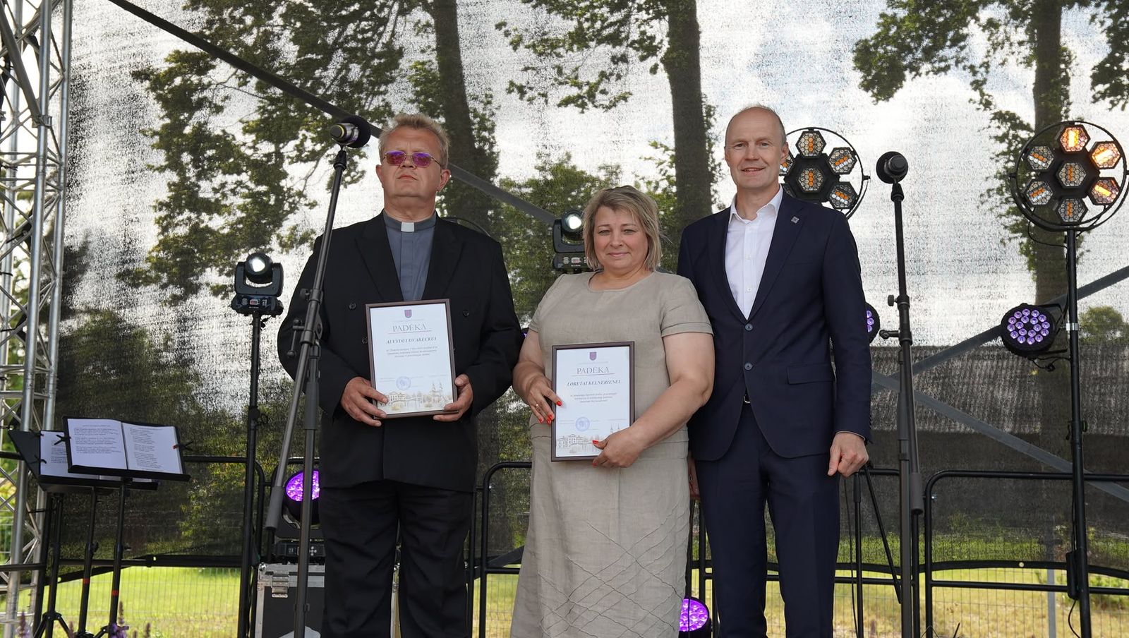BARTNINKAI. Birželio 29-ąją švenčiant tradicinę vidurvasario šventę – Petrines, Šv. apaštalų Petro ir Pauliaus parapijos klebonui kun. Alvydui Dvareckui už 20-ies metų nuoširdžią tarnystę Vilkaviškio kraštui ir jo žmonėms, už teikiamą šilumą bendruomenės nariams bei prasmingus sielovadinius darbus rajono meras Algirdas Neiberka įteikė padėką.