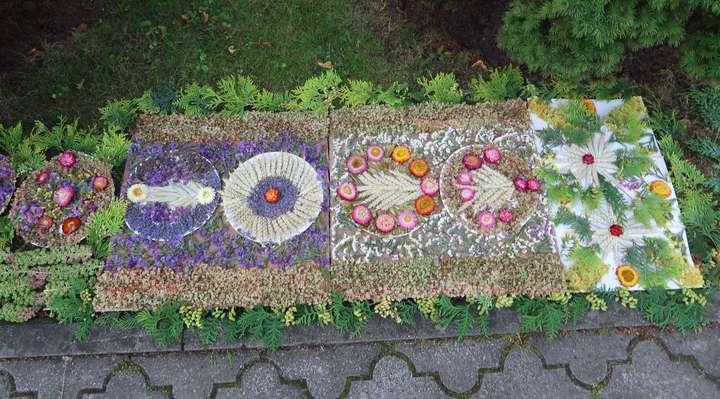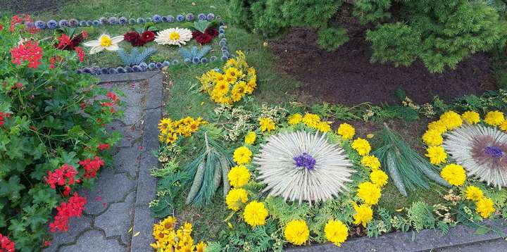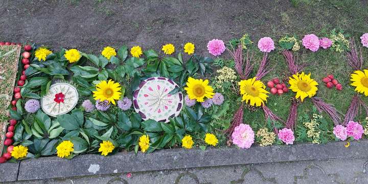 VILKAVIŠKIS. Jau ketvirtosios Žolinės šventės išvakarėse Vilkaviškio vyskupijos Švč. Mergelės Marijos Apsilankymo Katedros šventorius Vilkaviškio trečiojo amžiaus universiteto tarybos iniciatyva puošiamas gėlių ir įvairių augalų juostomis.