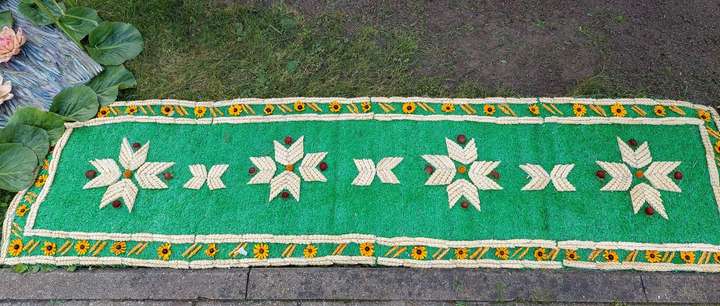 Šiemetinės Jubiliejaus šventovės aplinka nuklota išskirtiniais augmenijos raštais, įvairiais siužetais. Universiteto Dailės technologijų būrelio vadovė Marija Ščerbienė jau namuose sukurtus kilimėlius suklojo prie pagrindinio tako į šventovę. Jos pavyzdžiu pasekė ir raštus namuose ne vieną dieną kūrė ir kitos šio fakulteto narės. Dar tik vienerius mokslo metus šio fakulteto klausytoja buvusi tikybos mokytoja bartninkietė Vilija Striokienė į savo juostos pynimo procesą įtraukė ir vyrą Joną. Kartu laukuose rinko javų varpų, kartu rišo įspūdingą kilimą ir atnešė prie Katedros. Išpuošti Jubiliejaus Katedros šventorių rūpėjo net ir kybartietėms, rajono pakraštinio Vartų kaimo gyventojai. Entuziastingai įsijungė ir Anglijoje gyvenantis vienuolikametis Benas, pas močiutę su mama atostogaujantis… Prisijungė ir kasmetiniai talkininkai: „Bočių“, „Rudenėlio“ kolektyvų, „Carito“ organizacijos atstovai, pavieniai asmenys, šeimos. Ir kiekvienas galėjo dalintis savo nuotykių istorija, kaip ieškojo ir rinko žolynus būtent dėl to, kad prisidėtų prie šios ypatingos bendrystės Katedros šventoriuje