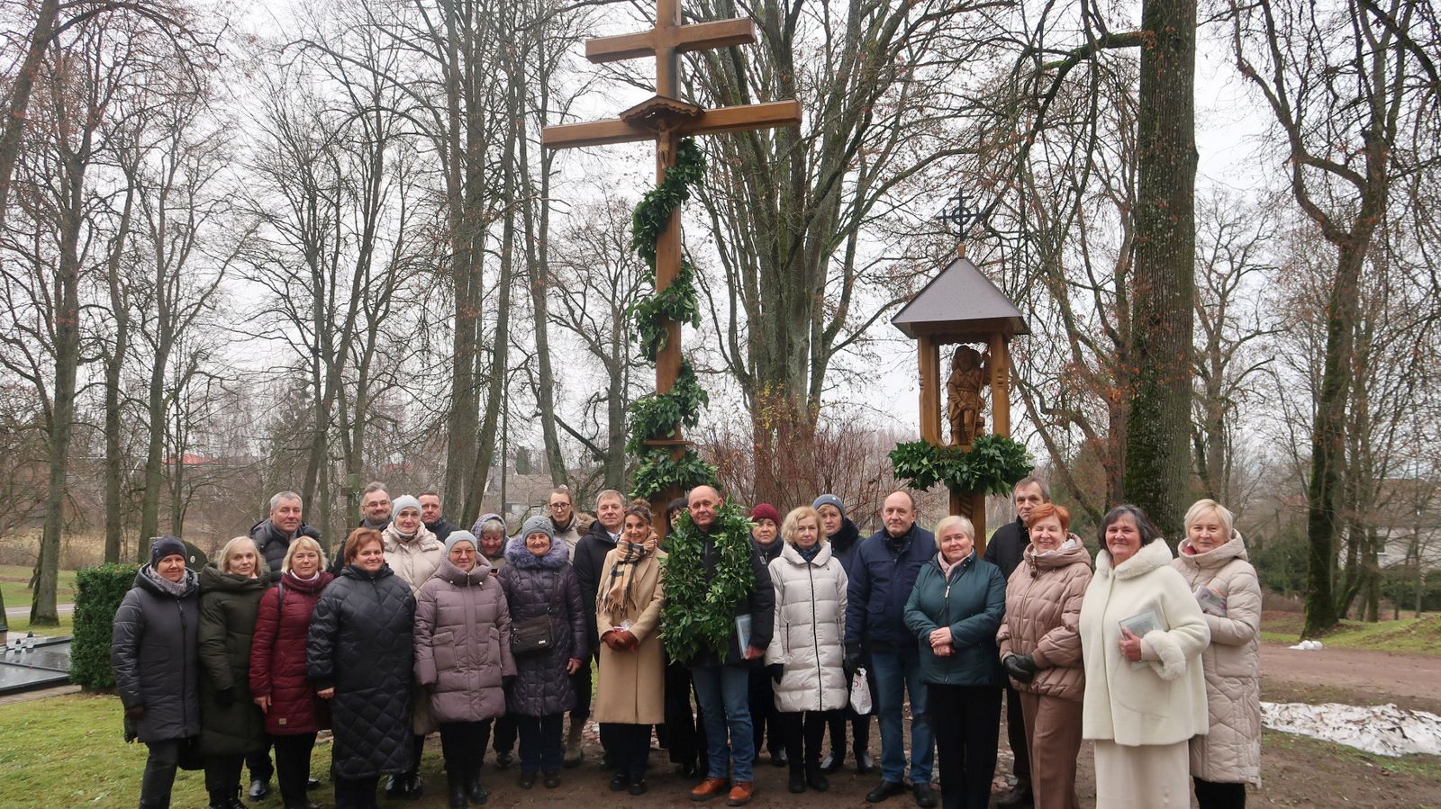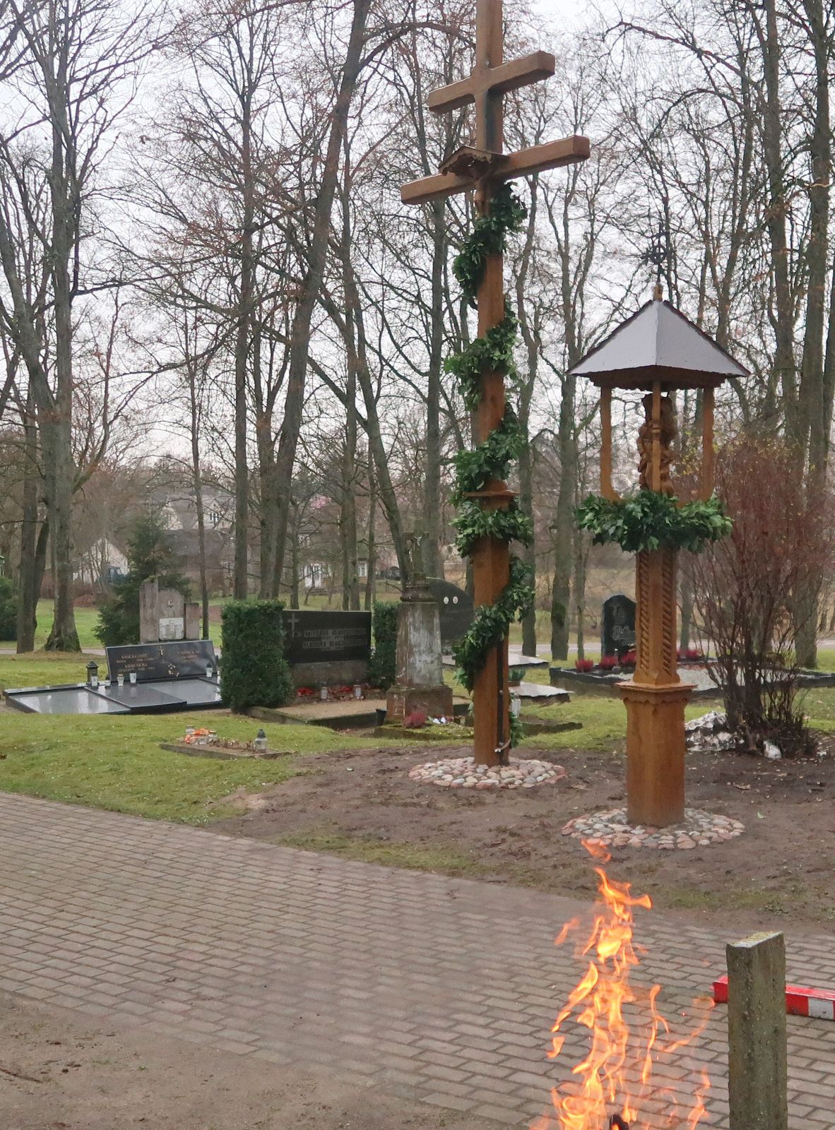 PAJEVONYS. Rūškanas antrasis Advento sekmadienis ypatinga šviesa suspindo Pajevonyje. Įkalnę į Šventakalnį papuošė naujas kryžius ir koplytstulpis. Po šv. Mišių gausiai susirinkus bendruomenės žmonėms ir svečiams naujus kapinių akcentus pašventino klebonas kun. Audrius Kurapka.