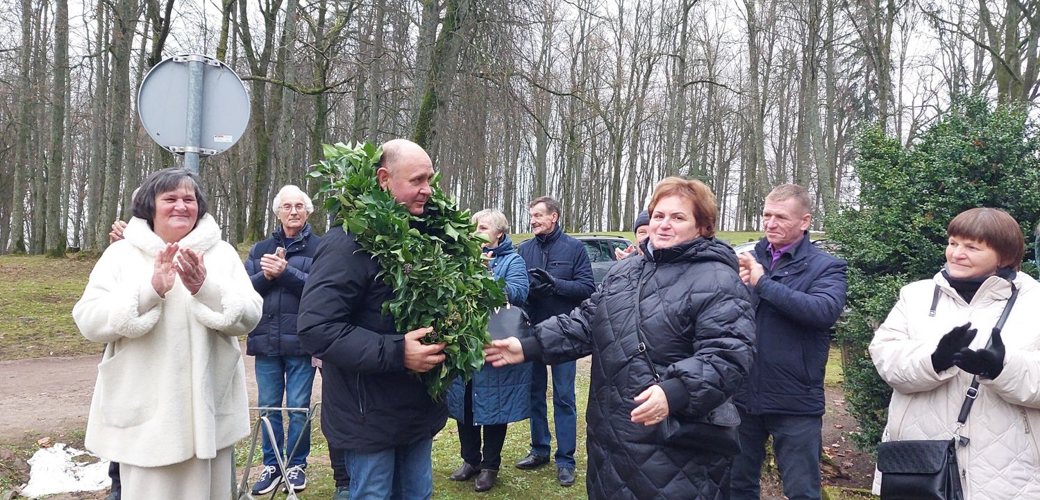 Pajevonio seniūnė Gintauta Žaliniakienė meistrą drožėją Andrių Bieliuką pagerbė seniūnijos moterų iš gebenių nupintu vainiku. Žalumynų girliandomis buvo papuošti ir kryžius bei koplytstulpis. Seniūnė už bendrą darbą dėkojo muziejininkei Aušrai Mickevičienei, bendruomenės pirmininkui Albinui Zinfeldui, girininkui Rymantui Vaičaičiui, ūkininkams Antanui Zdanaičiui, Valdui Vakarinui, rajono savivaldybės švietimo, kultūros ir sporto skyriaus specialistui Artūrui Blauzdžiūnui. Seniūnė jiems įteikė prisiminimo dovanėles.