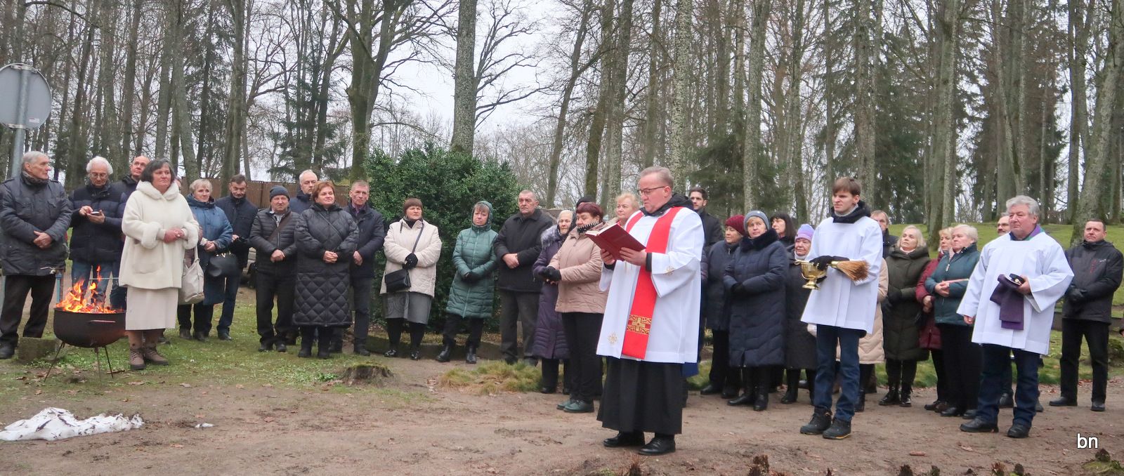 Susirinkusiems vietoje saulės šilumą paskleidė lauželio liepsna. Laikantis senos tradicijos, kad šventinto kryžiaus medžio nedera sukūrenti krosnyje, lauželyje buvo sudeginta nunykusio kryžiaus viena kryžma.
