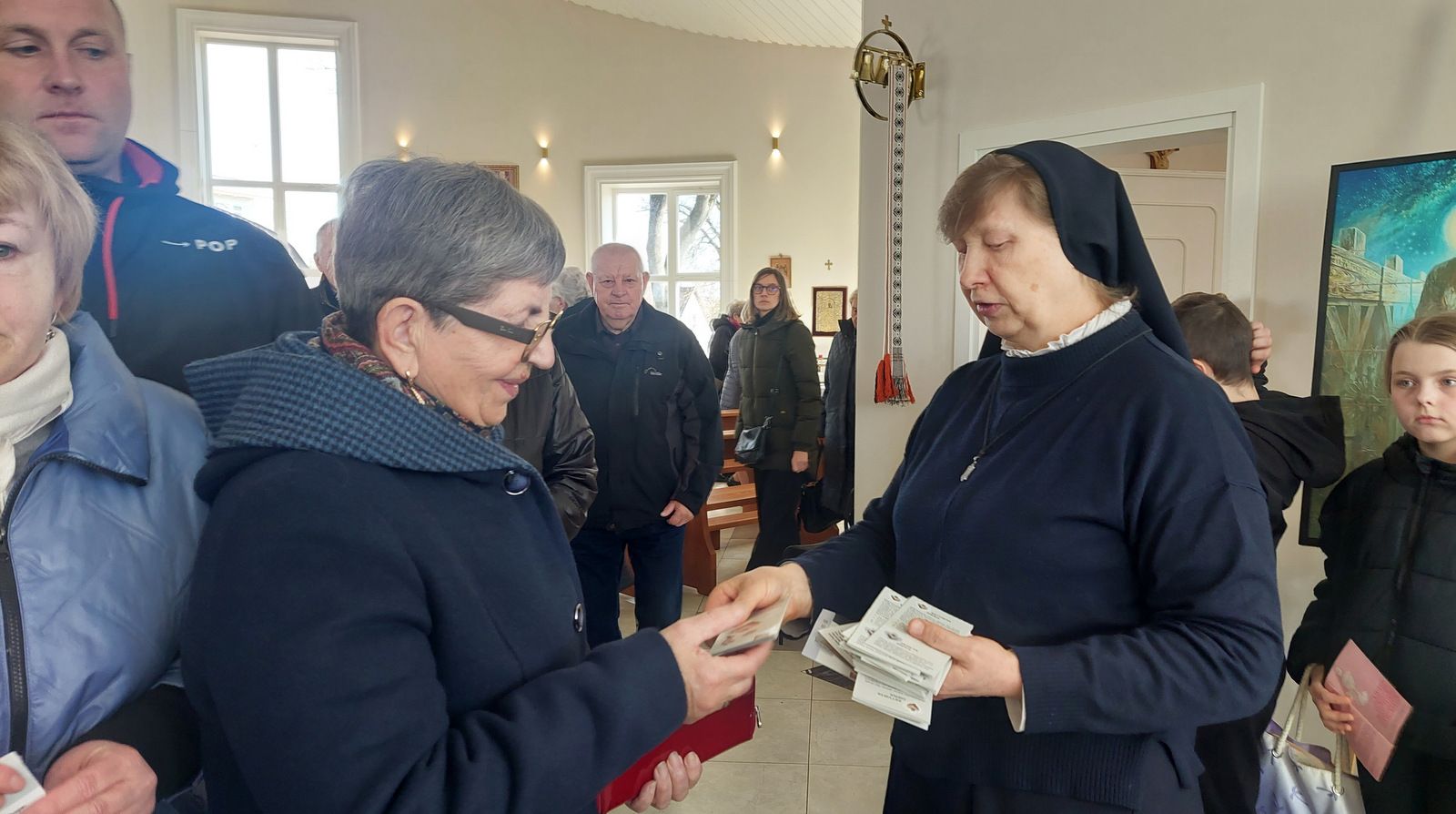 Iš tikro nutiko taip, kad Džiaugsmo (Laetare) sekmadienį Alvite viešėjo Švč. Mergelės Marijos Nekaltojo Prasidėjimo Vargdienių seserys. Jos atsivežė daug knygų ir kitų spaudinių apie arkivyskupą, maldų tekstų, išstatė informacinius iliustruotus stendus apie jo gyvenimo etapus. Taip pat atvežė Palaimintojo Jurgio Matulaičio pirmojo laipsnio relikviją – kryžiuje įkomponuotą mažytę dalelytę jo kraujo, išlikusią ir atrastą kažkada jo dėvėtuose marškiniuose.