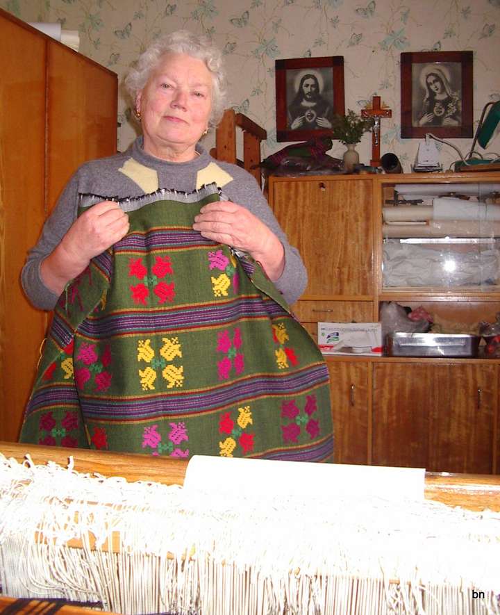 Kaišytinių prijuosčių audimo paslaptis ji perdavė Vilkaviškio kultūros centro „Mažosios audimo artelės“ audėjoms.