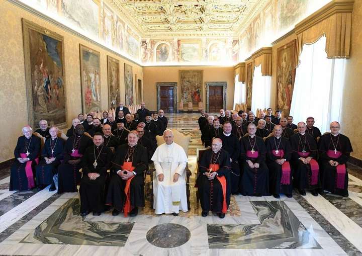 Dabartiniu istoriniu momentu irgi, kartu su iškilusiomis technologinės pažangos sąlygomis, nestokojama socialinių sunkumų bei prieštaravimų, todėl švęsdami Vilties Jubiliejų, turime prisiminti, jog šiandien, kaip ir vakar, reikia išgirsti Aukštybių balsą, kad žinotume, ką daryti: „viltis neapgauna, nes Dievo meilė išlieta mūsų širdyse Šventosios Dvasios, kuri mums duota“. (Rom 5, 5). Taigi, žinant, kad Viešpaties iniciatyvos ir darbai visada priekyje mūsų siekių, reikia atitinkamai nuteikti savo širdžių ir minčių troškimus per išmintingas įžvalgas, kad ganytojiškos pastangos tikrai būtų nukreiptos į galutinius tikslus, kalbėjo Šventasis Tėvas vienuoliams vyskupams. Drąsindamas broliškai tarpusavio pagalbai, dosnumui ir nesavanaudiškam atsidavimui dėl visos Kristaus kaimenės gerovės bei dėkodamas už ištikimą tarnystę, jis suteikė vienuolijoms priklausantiems hierarchams ir jų bendruomenėms savo apaštalinį palaiminimą.