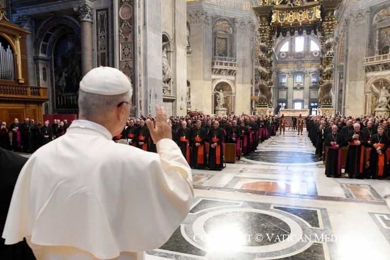 „Kiekvienas iš jūsų, kaip ir aš pats, pirmiau nei tapdami ganytojais, buvome avimis Viešpaties kaimenėje, – kalbėjo Romos vyskupas į Šv. Petro baziliką suėjusiems hierarchams pro Jubiliejaus Šventąsias duris. – Taigi, mes taip pat, netgi pirmiau nei kiti, esame pakviesti žengti pro tas duris, Kristaus išganymo simbolį. Jeigu mes norime vadovauti vietinėms Bažnyčioms, patikėtoms mūsų globai, turime leisti sau būti giliai atnaujinti Jėzaus, Gerojo Ganytojo, kad visiškai atitiktume Jo širdį ir Jo meilės slėpinį“. Šventasis Tėvas, priminęs dabartinių Šventųjų metų temą iš Laiško romiečiams „Viltis, kuri neapgauna“ (Plg. Rom 5,5), kurią nuolat kartodavo popiežius Pranciškus, todėl dažnai buvo vadinamas „vilties Popiežiumi“, jog visi vyskupai yra šio apaštalo Šv. Pauliaus pranašiškos žinios paveldėtojai. Jie turi užduotį perduoti šią brangią naujieną Dievo tautai tiek žodžiais, tiek asmeninio gyvenimo praktikavimu kasdienybėje. Taip reikia daryti net ir tada, kai aplink juntamas nenoras ją priimti, todėl tenka tarsi „plaukti prieš srovę“ arba labai skausmingomis situacijomis, kai, rodos, nebėra išeities. Ir būtent tais sunkiaisiais momentais tampa dar labiau akivaizdu, kad tikėjimas ir viltis kyla ne iš mūsų pačių, bet iš Dievo, todėl buvimas arti tų, kurie kenčia, gali jų širdyse su Šventosios Dvasios pagalba pakurstyti niekad negęstančią vilties liepsną, kurią savo prigimtyje laiko visi.